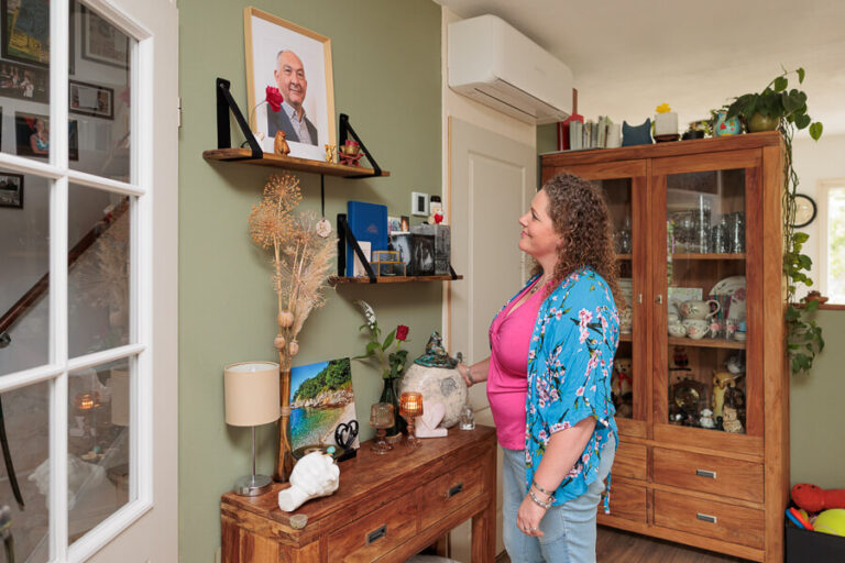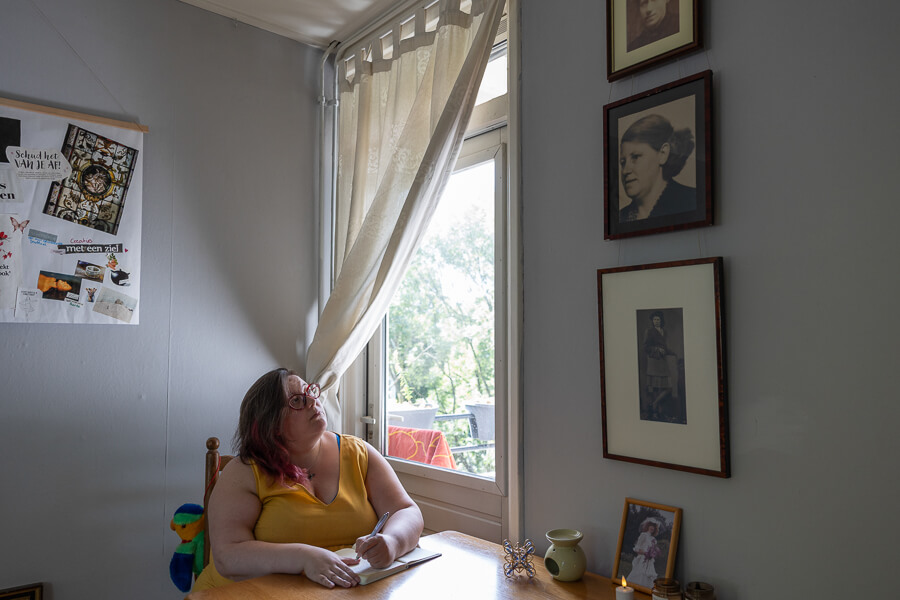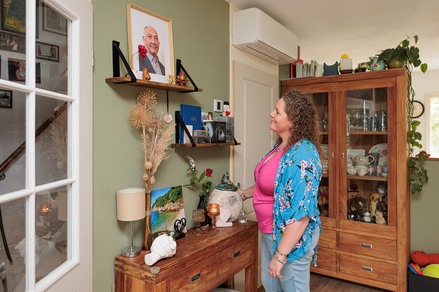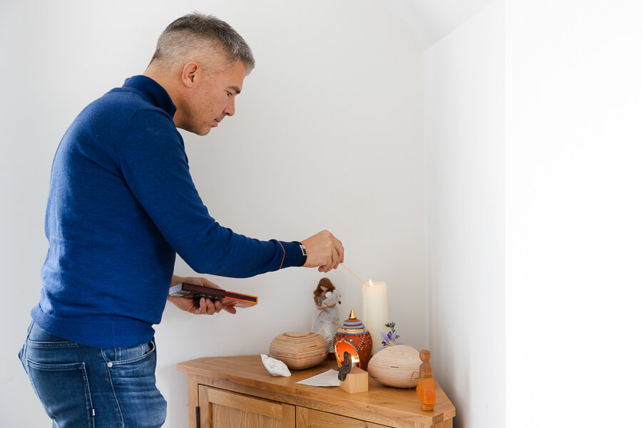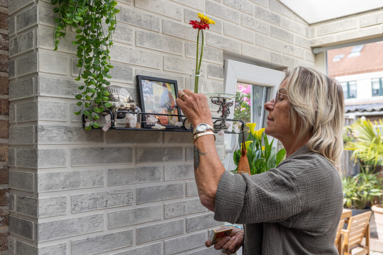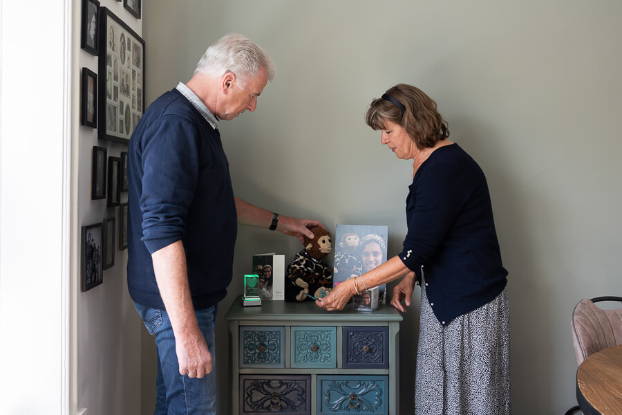 In deze serie portretteer ik mensen die een plek hebben ingericht om een overleden dierbare te herinneren.